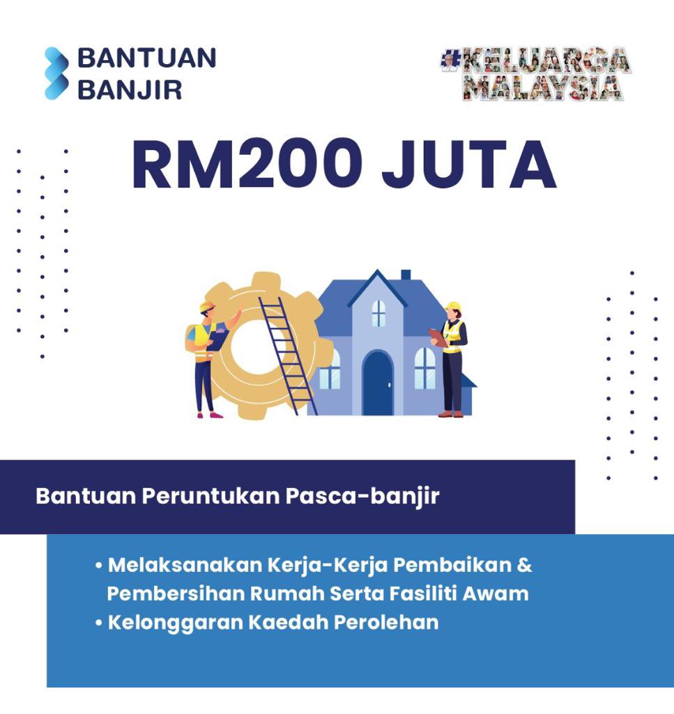 Antara skop bantuan untuk pembaikan adalah. Inisiatif Rumah Kasih Keluarga Malaysia telah diperkenalkan bertujuan membina semula dan membaik pulih rumah yang terkesan akibat banjir baru-baru ini dengan peruntukan. Perdana Menteri sebelum ini mengumumkan peruntukan sejumlah RM14 bilion Bantuan Banjir Keluarga Malaysia yang meliputi Bantuan Wang Ihsan BWI baucar tunai pembelian barangan.